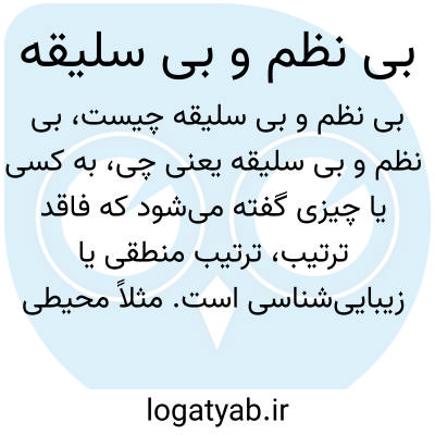 به کسی یا چیزی گفته می‌شود که فاقد ترتیب، ترتیب منطقی یا زیبایی‌شناسی است. مثلاً محیطی که پراکنده و نامرتب باشد و یا کسی که در انتخاب‌ها و رفتارهایش ذوق و هماهنگی نداشته باشد را بی نظم و بی سلیقه می‌نامند.
