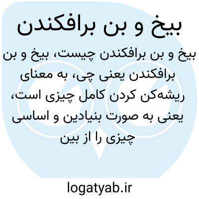 به معنای ریشهکن کردن کامل چیزی است، یعنی به صورت بنیادین و اساسی چیزی را از بین بردن. این عبارت معمولاً درباره زدودن مشکلات، آسیبها یا نهادهای نامطلوب به کار میرود.