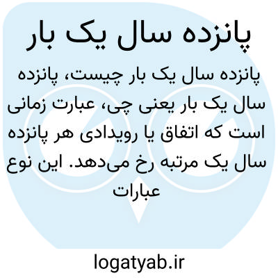 عبارت زمانی است که اتفاق یا رویدادی هر پانزده سال یک مرتبه رخ می‌دهد. این نوع عبارات بیشتر در توصیف چرخه‌های طبیعی، تاریخی یا دوره‌های بازگشتی به کار می‌روند.