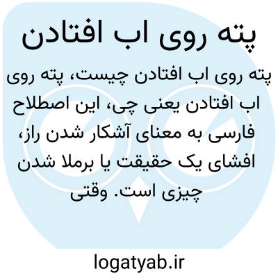 این اصطلاح فارسی به معنای آشکار شدن راز، افشای یک حقیقت یا برملا شدن چیزی است. وقتی گفته میشود «پته کسی روی آب افتاد»، یعنی نقشه یا دروغ یا کار مخفی او مشخص شده و دیگر نمیتواند آن را پنهان نگه دارد.