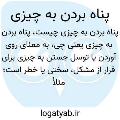 به معنای روی آوردن یا توسل جستن به چیزی برای فرار از مشکل، سختی یا خطر است؛ مثلاً ممکن است کسی به خدا، قانون یا شخصی قابل اعتماد پناه ببرد تا کمک بگیرد.