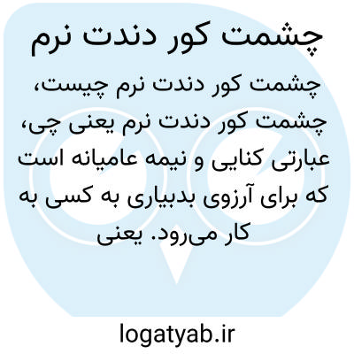 عبارتی کنایی و نیمه عامیانه است که برای آرزوی بدبیاری به کسی به کار می‌رود. یعنی می‌گویند «چشمت کور شود» به معنی امید و آرزوی بد برای چشم فرد است، و «دندت نرم» هم اشاره به ضعیف شدن و کم‌قدرت شدن دندان‌های فرد دارد که در فرهنگ عامیانه ایران می‌تواند به معنای ناتوانی یا شکست باشد. معمولاً به صورت شوخی یا اعتراض گفته می‌شود.