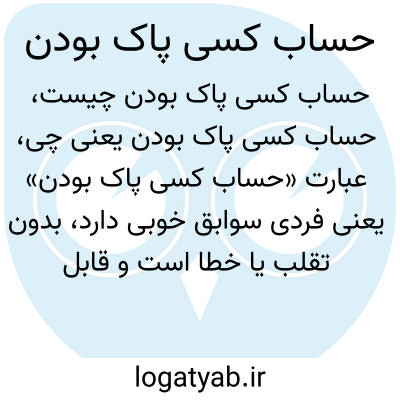 عبارت «حساب کسی پاک بودن» یعنی فردی سوابق خوبی دارد، بدون تقلب یا خطا است و قابل اعتماد و مورد احترام است. این اصطلاح معمولاً به پاکدامنی، صداقت و درستکاری یک شخص اشاره دارد.