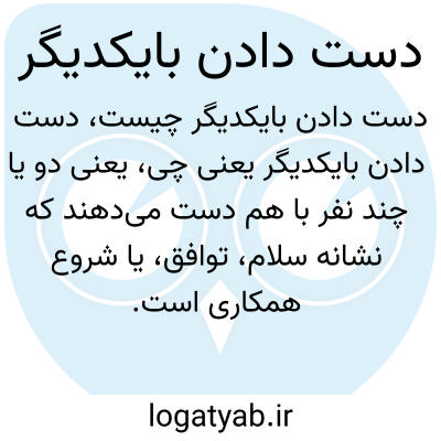 یعنی دو یا چند نفر با هم دست می‌دهند که نشانه سلام، توافق، یا شروع همکاری است. این عمل نمادی از دوستی، احترام، و رضایت متقابل است.