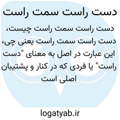 این عبارت در اصل به معنای "دست راست" یا فردی که در کنار و پشتیبان اصلی است اشاره دارد، ولی اگر به صورت لفظی برداشت کنیم یعنی "دست راست در سمت راست بدن" که بدون معناست. احتمالاً عبارت مبهم است و بیشتر در قالب ضرب‌المثل یا ترکیب به کار می‌رود.