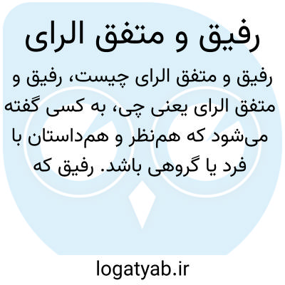 به کسی گفته میشود که همنظر و همداستان با فرد یا گروهی باشد. رفیق که همراه و دوست است و متفق الرای یعنی موافق و همنظر.