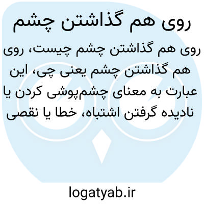 این عبارت به معنای چشم‌پوشی کردن یا نادیده گرفتن اشتباه، خطا یا نقصی است که ممکن است رخ داده باشد. در واقع یعنی با گذشت و اغماض به مسئله‌ای برخورد کردن و بدون اعتراض از آن عبور کردن.