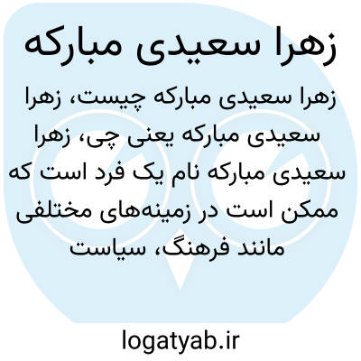 زهرا سعیدی مبارکه نام یک فرد است که ممکن است در زمینههای مختلفی مانند فرهنگ، سیاست یا علم شناخته شده باشد. برای توضیح دقیقتر نیاز به اطلاعات تکمیلی درباره این شخص وجود دارد.