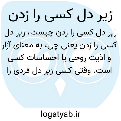 به معنای آزار و اذیت روحی یا احساسات کسی است. وقتی کسی زیر دل فردی را میزند یعنی رفتاری انجام میدهد که موجب ناراحتی، ناخوشایندی یا کدورت در دل آن شخص میشود.