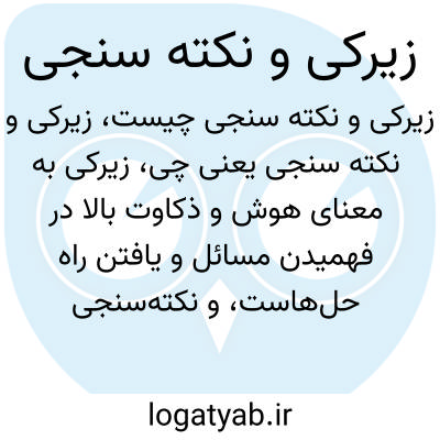 زیرکی به معنای هوش و ذکاوت بالا در فهمیدن مسائل و یافتن راه حل‌هاست، و نکته‌سنجی توانایی توجه دقیق به جزئیات و دریافت نکات مهم و ظریف در مسائل مختلف است؛ هر دو ویژگی‌های مهم در فهم عمیق و تصمیم‌گیری‌های درست هستند.