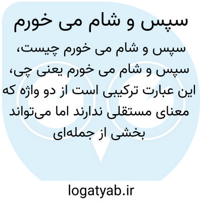 این عبارت ترکیبی است از دو واژه که معنای مستقلی ندارند اما می‌تواند بخشی از جمله‌ای باشد. «سپس» به معنای بعد از آن است و «شام می خورم» به معنای صرف وعده‌ی شبانه غذا است.