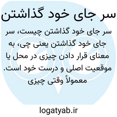 به معنای قرار دادن چیزی در محل یا موقعیت اصلی و درست خود است. معمولاً وقتی چیزی به هم خورده یا جابجا شده باشد، آن را سر جای خود میگذارند تا نظم و ترتیب بازگردد.