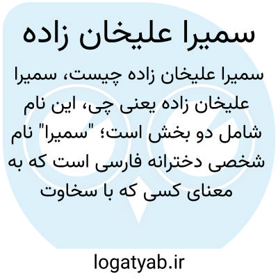 این نام شامل دو بخش است؛ "سمیرا" نام شخصی دخترانه فارسی است که به معنای کسی که با سخاوت و شیرینزبان است، و "علیخان زاده" به معنای فرزند علیخان است که یک نام خانوادگی یا نسبی در فرهنگ ایرانی است.