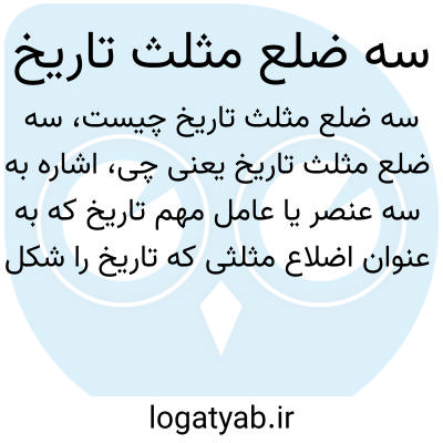 اشاره به سه عنصر یا عامل مهم تاریخ که به عنوان اضلاع مثلثی که تاریخ را شکل میدهند، مطرح میشوند. این اضلاع ممکن است شامل انسان، مکان و زمان یا ایدئولوژی، اقتصاد و سیاست باشند.