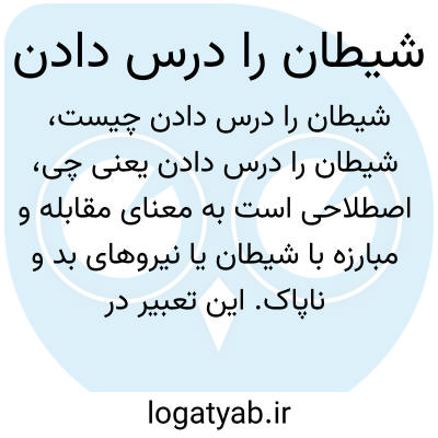 اصطلاحی است به معنای مقابله و مبارزه با شیطان یا نیروهای بد و ناپاک. این تعبیر در متون عرفانی و دینی اغلب به معنای آموزش دادن یا علم آموزی به کسی است که در جهت مقابله با اهریمن یا وسوسههای شیطانی گام برمیدارد.