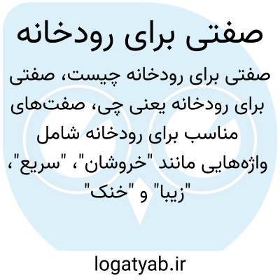 صفتهای مناسب برای رودخانه شامل واژههایی مانند "خروشان"، "سریع"، "زیبا" و "خنک" میشوند که نشاندهنده ویژگیهای مختلف رودخانه هستند. مثلاً رودخانه خروشان به رودخانهای پرجنبوجوش اشاره دارد.