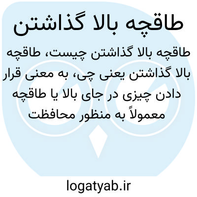 به معنی قرار دادن چیزی در جای بالا یا طاقچه معمولاً به منظور محافظت یا نمایش دادن آن است. این عبارت ممکن است به معنای گذاشتن وسایل یا اشیای قیمتی، گرانبها یا معنوی در جایگاهی بلندتر در طاقچه باشد تا هم قابل مشاهده باشد و هم کمتر در معرض آسیب قرار گیرد.