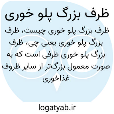 ظرف بزرگ پلو خوری ظرفی است که به صورت معمول بزرگ‌تر از سایر ظروف غذاخوری طراحی شده و به طور تخصصی برای سرو برنج یا پلو استفاده می‌شود. این ظرف‌ها معمولاً گود و پهن هستند تا حجم زیادی از برنج را در خود جای دهند و برای مهمانی‌ها و وعده‌های خانوادگی کاربردی‌اند.