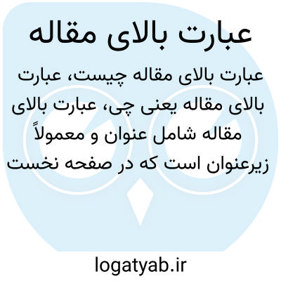 عبارت بالای مقاله شامل عنوان و معمولاً زیرعنوان است که در صفحه نخست یک مقاله به خواننده ارائه میشود. این عبارت نقش مهمی در جلب توجه خواننده و معرفی موضوع اصلی مقاله دارد و باید دقیق، خلاصه و گویا باشد تا مخاطب بتواند از طریق آن دریابد که مقاله درباره چه موضوعی نوشته شده است.