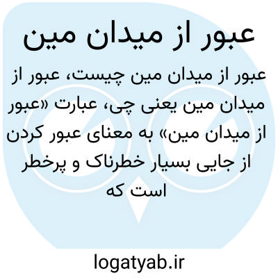 عبارت «عبور از میدان مین» به معنای عبور کردن از جایی بسیار خطرناک و پرخطر است که اشتباه یا بیدقتی در آن ممکن است به عواقب جبرانناپذیر منجر شود. این اصطلاح گاهی به صورت استعاری برای توصیف شرایط دشوار و پرمخاطره به کار میرود.