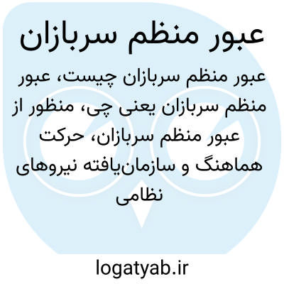 منظور از عبور منظم سربازان، حرکت هماهنگ و سازمانیافته نیروهای نظامی است که با نظم خاصی در یک مسیر مشخص یا هنگام رژه نظامی انجام میشود تا قدرت و انضباط نیروها را نشان دهد.