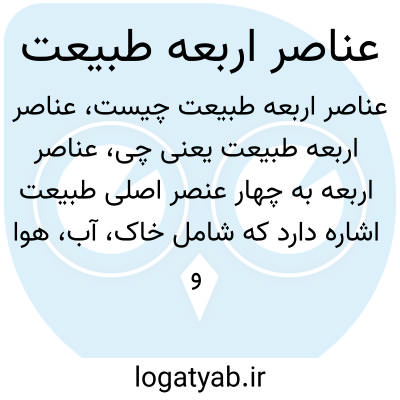 عناصر اربعه به چهار عنصر اصلی طبیعت اشاره دارد که شامل خاک، آب، هوا و آتش هستند و در فلسفه‌ها و طب قدیم نقش اساسی دارند.