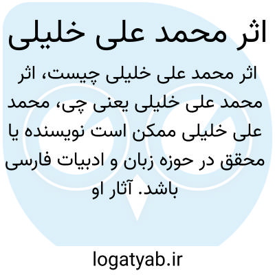محمد علی خلیلی ممکن است نویسنده یا محقق در حوزه زبان و ادبیات فارسی باشد. آثار او معمولاً در قالب کتاب یا مقاله درباره ادبیات، زبان شناسی یا تاریخ ادبیات ایران منتشر شده است.