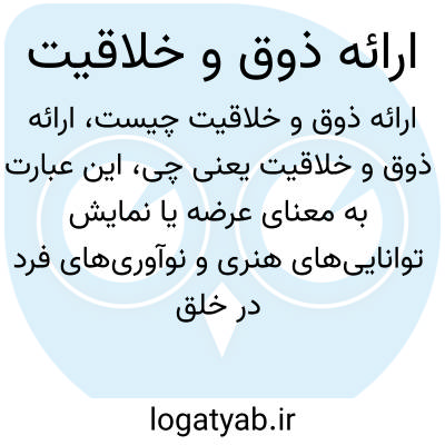 این عبارت به معنای عرضه یا نمایش توانایی‌های هنری و نوآوری‌های فرد در خلق آثار بدیع و ابتکاری است. ارائه ذوق و خلاقیت، فرایندی است که طی آن فرد توانمندی‌های ذهنی و هنری خود را در قالب‌های مختلف نمایان می‌کند.