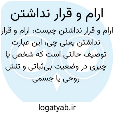 این عبارت توصیف حالتی است که شخص یا چیزی در وضعیت بیثباتی و تنش روحی یا جسمی هست و نمیتواند به حالت سکون یا آرامش برسد. معمولاً این حالت در شرایط اضطراب، نگرانی یا مشکلات روانی دیده میشود.