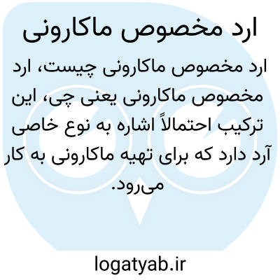 این ترکیب احتمالاً اشاره به نوع خاصی آرد دارد که برای تهیه ماکارونی به کار میرود. آرد مخصوص ماکارونی معمولاً حاوی پروتئین بالا و کیفیت ویژه برای حفظ شکل و بافت ماکارونی است.