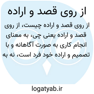 به معنای انجام کاری به صورت آگاهانه و با تصمیم و اراده خود فرد است، نه به صورت اتفاقی یا ناخواسته. یعنی فرد به عمد و با شرایطی که خودش میخواهد کاری را انجام میدهد.