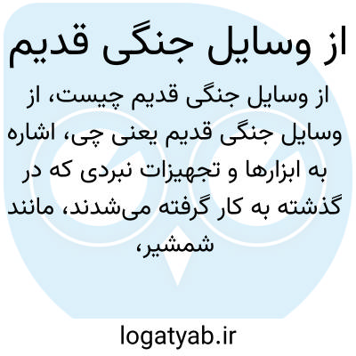 اشاره به ابزارها و تجهیزات نبردی که در گذشته به کار گرفته میشدند، مانند شمشیر، کمان، نیزه، زره و توپهای اولیه که امروزه جای خود را به تکنولوژیهای مدرن دادهاند.