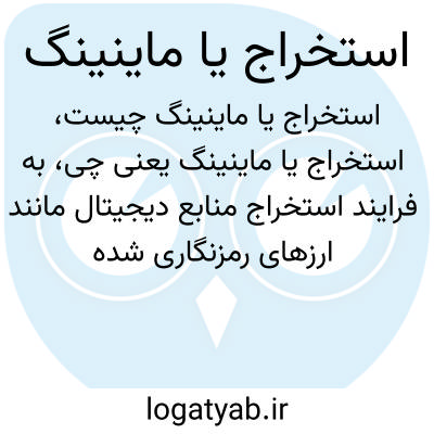 به فرایند استخراج منابع دیجیتال مانند ارزهای رمزنگاری شده (بیتکوین و غیره) گفته میشود که با استفاده از تجهیزات سختافزاری پیچیده تراکنشها را تأیید و پردازش میکنند و در ازای آن پاداش دریافت میکنند. همچنین در معنای سنتی به استخراج مواد معدنی از معادن نیز اشاره دارد.