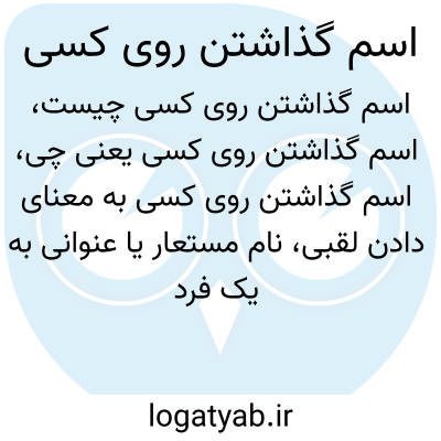 اسم گذاشتن روی کسی به معنای دادن لقبی، نام مستعار یا عنوانی به یک فرد است که ممکن است به خاطر ویژگی خاص، رفتار یا نقش او باشد. این عمل در فرهنگ‌ها به منظور تمجید، تمسخر یا شناخت ساده‌تر فرد انجام می‌شود.
