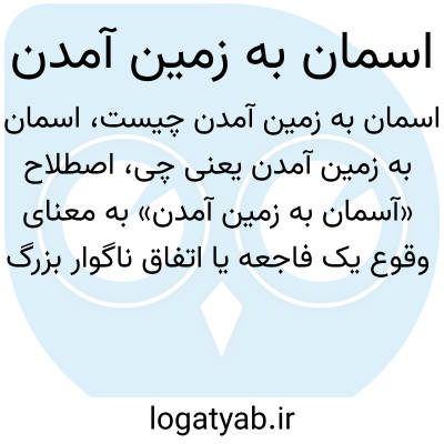 اصطلاح «آسمان به زمین آمدن» به معنای وقوع یک فاجعه یا اتفاق ناگوار بزرگ است که همه چیز را به هم میریزد و معمولاً بیانگر ناامیدی، شوک یا شدت یک حادثه است.