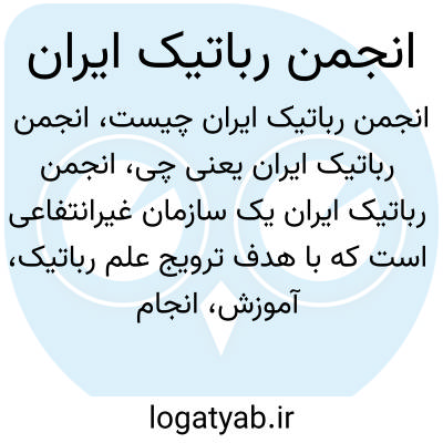 انجمن رباتیک ایران یک سازمان غیرانتفاعی است که با هدف ترویج علم رباتیک، آموزش، انجام پژوهشها و توسعه فناوریهای مرتبط در ایران فعالیت میکند. این انجمن معمولاً در برگزاری مسابقات، سمینارها و کارگاههای تخصصی نقش مؤثر دارد و به رشد علاقهمندان به رباتیک کمک میکند.