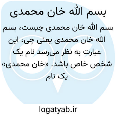 این عبارت به نظر می‌رسد نام یک شخص خاص باشد. «خان محمدی» یک نام خانوادگی رایج در ایران است و «بسم الله» معمولاً به معنای آغاز کاری با نام خداوند است. احتمالاً به فردی با نام بسم الله خان محمدی اشاره دارد، اما اطلاعات بیشتر و مشخص‌تری لازم است تا توضیح دقیق‌تر داده شود.