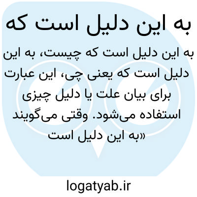 این عبارت برای بیان علت یا دلیل چیزی استفاده میشود. وقتی میگویند «به این دلیل است که»، در واقع قصد دارند دلیل وقوع یک واقعه، عمل یا حالت را توضیح دهند و ارتباط علت و معلولی را روشن کنند.