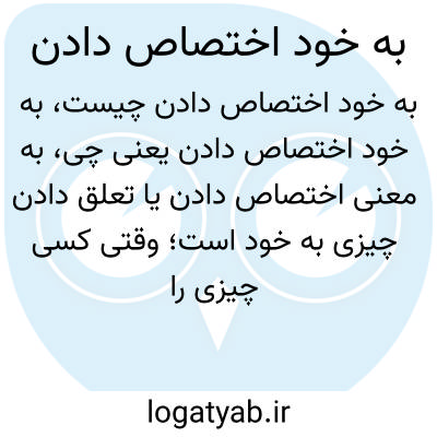 به معنی اختصاص دادن یا تعلق دادن چیزی به خود است؛ وقتی کسی چیزی را به خود اختصاص می‌دهد یعنی آن را برای خودش می‌خواهد و به دیگران نمی‌دهد.