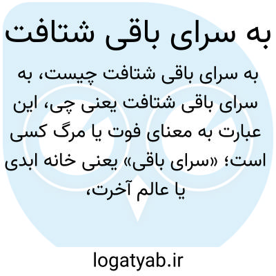 این عبارت به معنای فوت یا مرگ کسی است؛ «سرای باقی» یعنی خانه ابدی یا عالم آخرت، پس «شتافتن به سرای باقی» یعنی رفتن به دنیای دیگر.