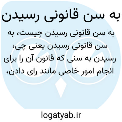 رسیدن به سنی که قانون آن را برای انجام امور خاصی مانند رای دادن، رانندگی یا ازدواج مجاز میداند؛ یعنی بلوغ قانونی پیدا کردن.