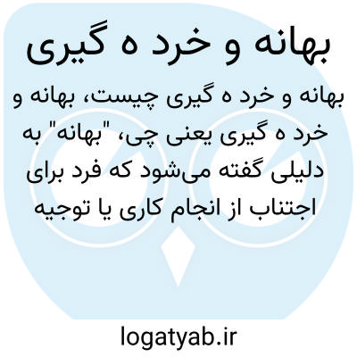 "بهانه" به دلیلی گفته می‌شود که فرد برای اجتناب از انجام کاری یا توجیه رفتار خود مطرح می‌کند. "خرد ه گیری" ممکن است به اشتباه تایپی برای "خرده‌گیری" باشد که به معنای گرفتن نکات جزئی یا ایرادات کوچک از کسی است که معمولاً به نوعی انتقاد کوچک و ظریف اطلاق می‌شود.