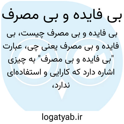 عبارت "بی فایده و بی مصرف" به چیزی اشاره دارد که کارایی و استفادهای ندارد، و وجود یا انجام آن نتیجهای مثبت و مفید به دنبال ندارد. این عبارت برای توصیف اشیاء، کارها یا حتی رفتارهایی به کار میرود که به نظر میرسد بدون نتیجه یا تأثیر واقعی باشند و صرفاً موجب هدر رفتن زمان، انرژی یا منابع شوند.