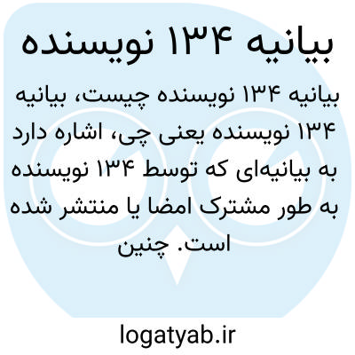 اشاره دارد به بیانیه‌ای که توسط ۱۳۴ نویسنده به طور مشترک امضا یا منتشر شده است. چنین بیانیه‌هایی معمولاً در زمینه‌های اجتماعی، سیاسی یا فرهنگی برای اعلام نظر جمعی، اعتراض یا حمایت از موضوعی خاص به کار می‌رود.