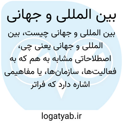 اصطلاحاتی مشابه به هم که به فعالیت‌ها، سازمان‌ها، یا مفاهیمی اشاره دارد که فراتر از مرزهای یک کشور عمل می‌کنند؛ «بین‌المللی» معمولاً درباره تعاملات چند کشور و «جهانی» درباره کل دنیا به کار می‌رود.