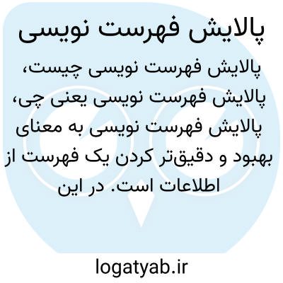 پالایش فهرست نویسی به معنای بهبود و دقیق‌تر کردن یک فهرست از اطلاعات است. در این فرآیند، اطلاعاتی که نادرست، تکراری یا غیرضروری هستند حذف شده و فهرست به شکلی مرتب و منظم تنظیم می‌شود تا قابلیت استفاده بیشتری داشته باشد.