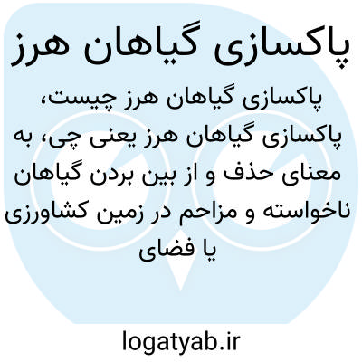 به معنای حذف و از بین بردن گیاهان ناخواسته و مزاحم در زمین کشاورزی یا فضای سبز است. گیاهان هرز به رشد گیاهان اصلی آسیب می‌رسانند و با رقابت برای منابعی مثل نور، آب و مواد مغذی باعث کاهش کیفیت و کمیت محصول می‌شوند، بنابراین پاکسازی آنها برای حفظ سلامت و بهره‌وری محیط ضروری است.
