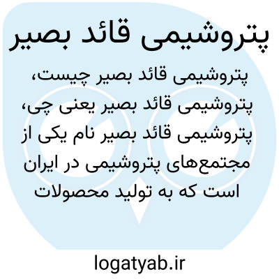 پتروشیمی قائد بصیر نام یکی از مجتمعهای پتروشیمی در ایران است که به تولید محصولات شیمیایی و پتروشیمیایی مختلف میپردازد. این مجتمعها معمولاً در زمینه تولید مواد اولیه برای صنایع پلاستیک، کودهای شیمیایی و سوختهای شیمیایی فعالیت دارند.
