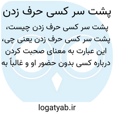 این عبارت به معنای صحبت کردن درباره کسی بدون حضور او و غالباً به صورت منفی یا بدون اجازه آن فرد است که می‌تواند نشانه غیبت یا بدگویی باشد.