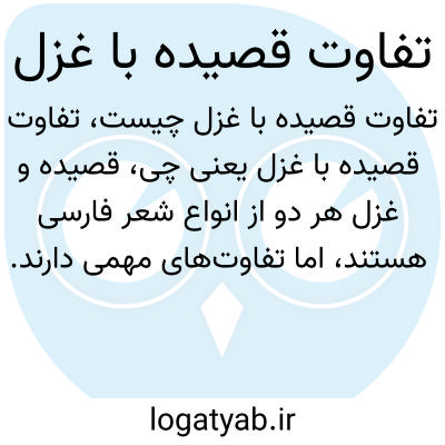 قصیده و غزل هر دو از انواع شعر فارسی هستند، اما تفاوتهای مهمی دارند. قصیده شعری است بلند که معمولاً برای مدح یا مذمت سروده میشود و در آن غالباً یک موضوع واحد به صورت گسترده شرح داده میشود. غزل شعری کوتاهتر است که به بیان احساسات عاشقانه، عارفانه یا اندیشههای شخصی میپردازد و ساختار آن معمولا شامل مصراعهای کوتاه و قافیههای مشخص است.